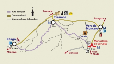 La ruta sale del monasterio de Veruela y visita la Cruz Negra de Bécquer, el poblado celtibérico de la Oruña, Trasmoz y, por último, la localidad de Litago. En la creación de este recorrido colaboran la Diputación de Zaragoza y la Asociación para el Desarrollo de las Tierras del Moncayo (Asomo).