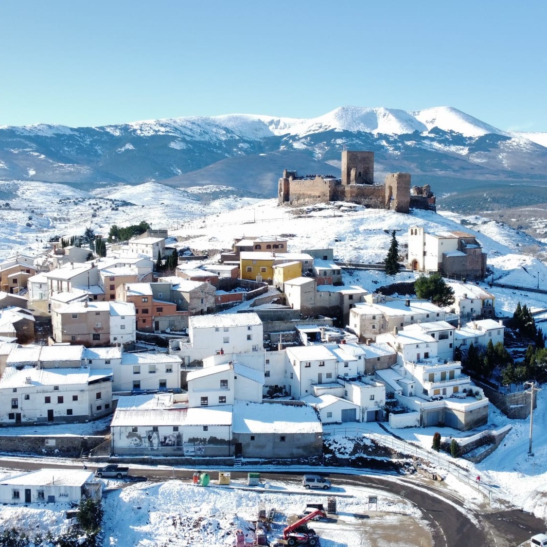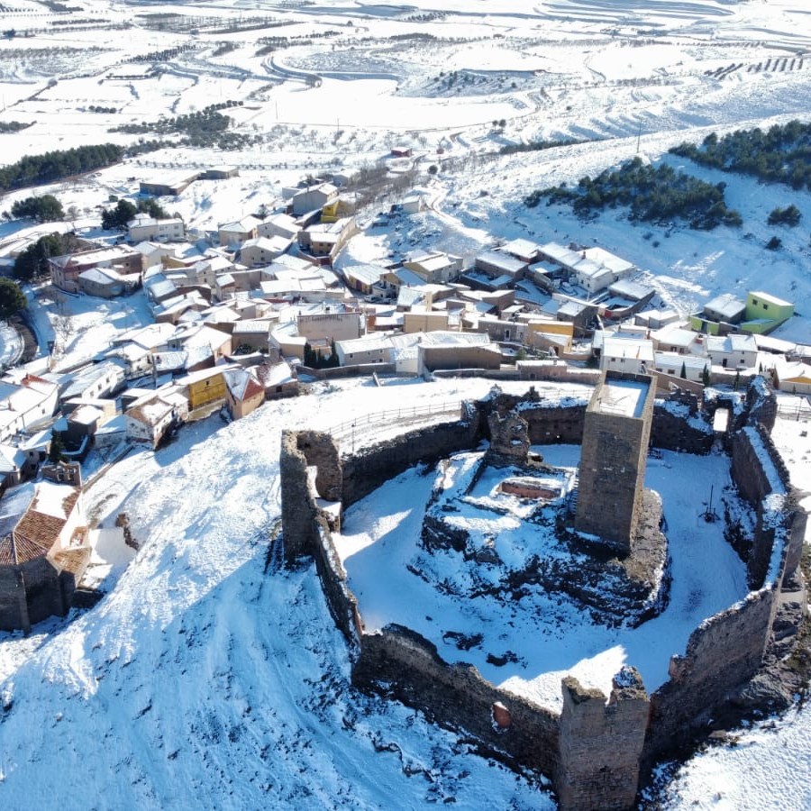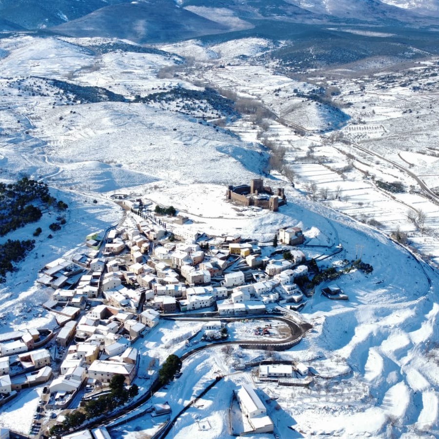Trasmoz nevado desde el aire